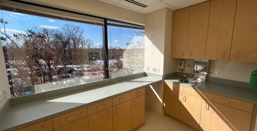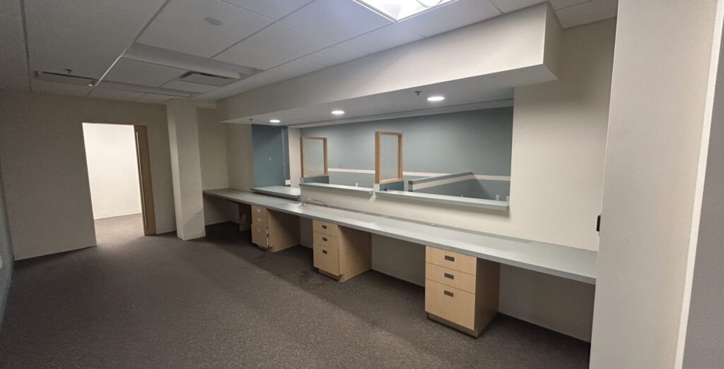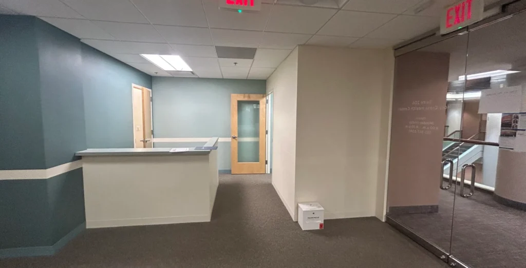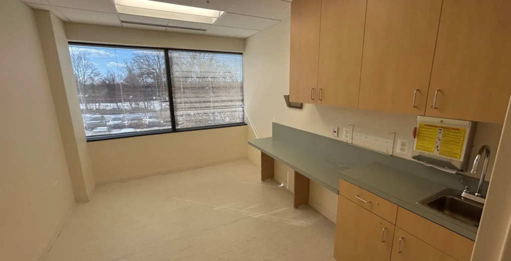 Built out medical space with waiting area, reception, large